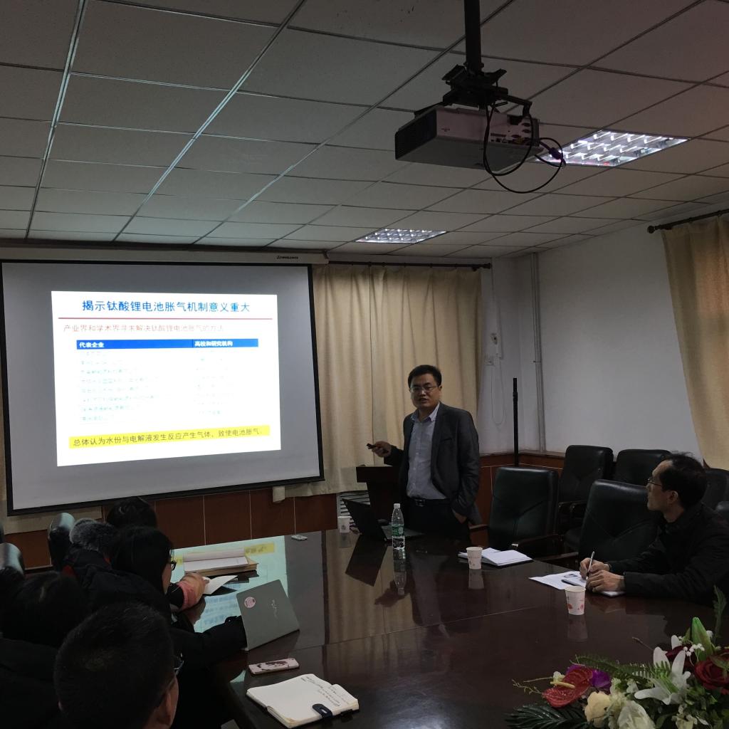 2017年11月22日下午,清华大学贺艳兵教授应邀来我院进行学术交流,在材料科学与工程学院会议室为我院师生作了题为《高安全性高能量密度锂电池和材料研究》的学术报告。报告由我院科研与学科建设副院长刘斌教授主持。参会人员有能源动力工程学院副院长胡胜亮教授,王延忠副教授,王慧奇博士、董英鸽博士、白利忠博士、薛超瑞博士、李宁博士及相关研究方向的研究生。