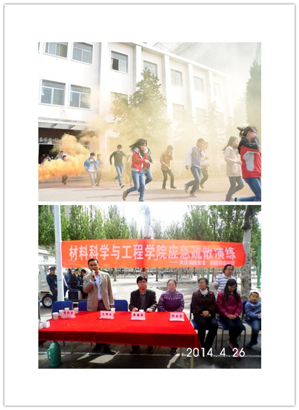 为加强全院学生安全工作,增强学生安全意识,进一步培养广大师生在突发性灾害发生时, 掌握有关逃生知识技能。2014年4月26日上午,材料科学与工程学院举办了消防应急疏散演练。院党委廖海洪副书记、保卫处吴耀金副处长及全院辅导员及班主任老师观摩了本次演练。演练由廖副书记总指挥,全院大一大二共25个班级近1100名学生参加了本次演练。此次演练是材料学院继宿舍区疏散演练之后本学期的第二次演练,逃生地选在了学生上课、人员密集的教室——12号教学楼,目的就是为了锻炼学生在教室内的逃生技巧。