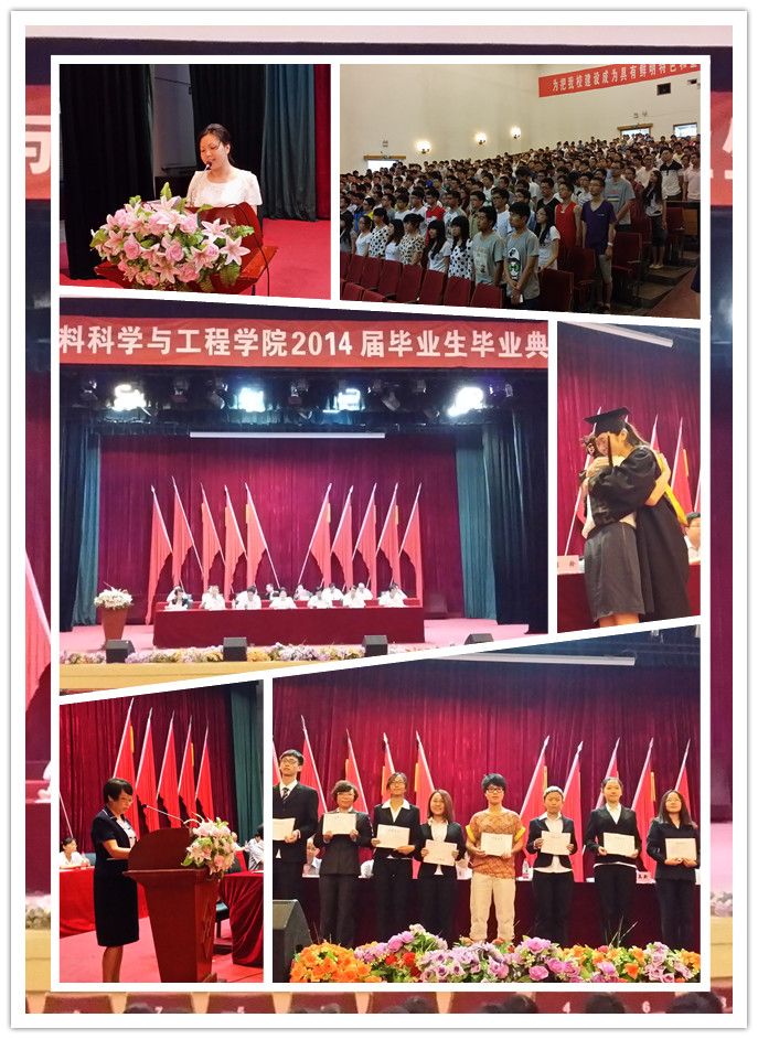 “多年师生情,今昔恨别离。满堂祝福语,只赠学子行”。在这个毕业的季节,材料科学与工程学院2014届毕业生毕业典礼于6月30日下午14时在科艺苑隆重举行。院领导刘亚青、侯华、廖海洪、冯再新、李迎春、学科部主任、副主任、学院各科室负责人及522名本科毕业生、80名硕士研究生参加了此次典礼。