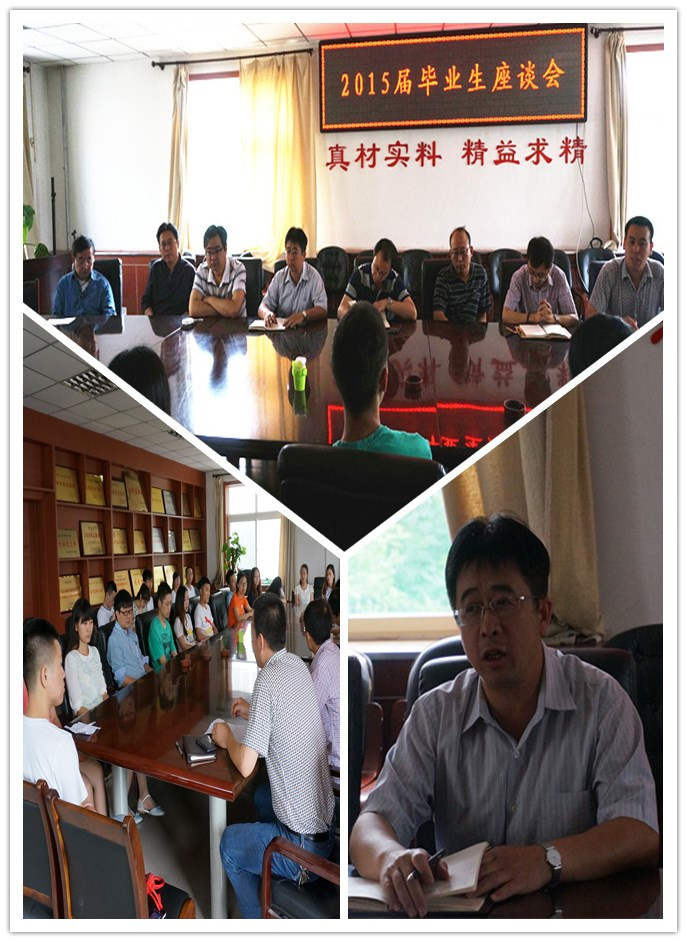 2015年6月25日上午10:00,在材料学院二层会议室,我院召开了毕业生座谈会。院党委书记侯华、教学院长李迎春、各学科部副主任、学生科长郭云霞、团委副书记毋登辉和宋晓露老师以及各毕业班代表出席了本次会议。会议由毋登辉老师主持。