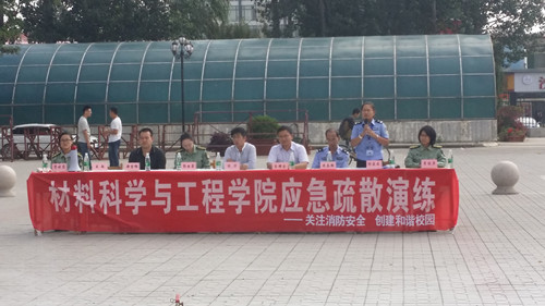 为加强新生安全工作,增强新生安全意识,进一步培养广大师生在突发性灾害发生时, 掌握有关逃生知识技能。2015年9月24日中午,材料科学与工程学院举办了新生应急疏散演练。院党委侯华书记、保卫处吴耀金副处长、史志强科长、郭薇薇科长全院辅导员及班主任老师观摩了本次演练。演练由郭云霞老师总指挥,全院大一新生共12个班级近600名学生参加了本次演练。此次演练逃生地选在了文韬2号楼和文韬6号楼,目的就是为了锻炼学生在宿舍内的逃生技巧。