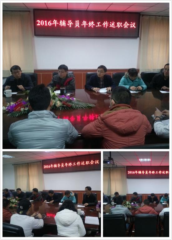 2016年11月21日下午16:10,在材料学院二层会议室,材料学院召开2016年辅导员年终工作述职。院领导廖海洪、冯再新、李迎春,学科部主任、副主任、科室领导、班主任代表以及学生代表担任此次述职答辩的评委。会议由廖海洪副书记主持。
