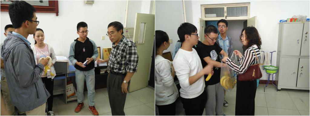 老师们殷切地向同学询问了近期的生活状况和学习状况,并将慰问品亲自送到同学手中,希望同学们努力的同时注意合理安排休息。薛亚奎书记鼓励同学们,“今天你以中北为荣,明天中北以你为荣”,并祝愿同学们能在比赛中取的优异的成绩。