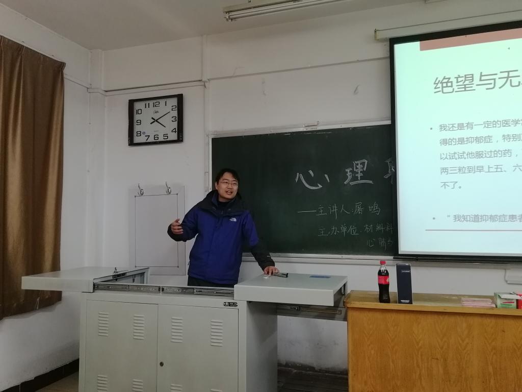 2017年12月12号下午4点,特邀中北大学心理健康中心副主任屠鸣老师心晴驿站全体成员及17级新生班级联络员在10407H教室开展了心理联络员培训讲座,出席本次大会的老师还有有学生科殷炳叶老师。