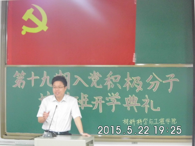 2015年5月23日上午8点,材料科学与工程学院在15106H举办第十九期院党课开学典礼。学院党委副书记廖海洪老师,各学生党支部书记以及110名入党积极分子参加了此次开学典礼。