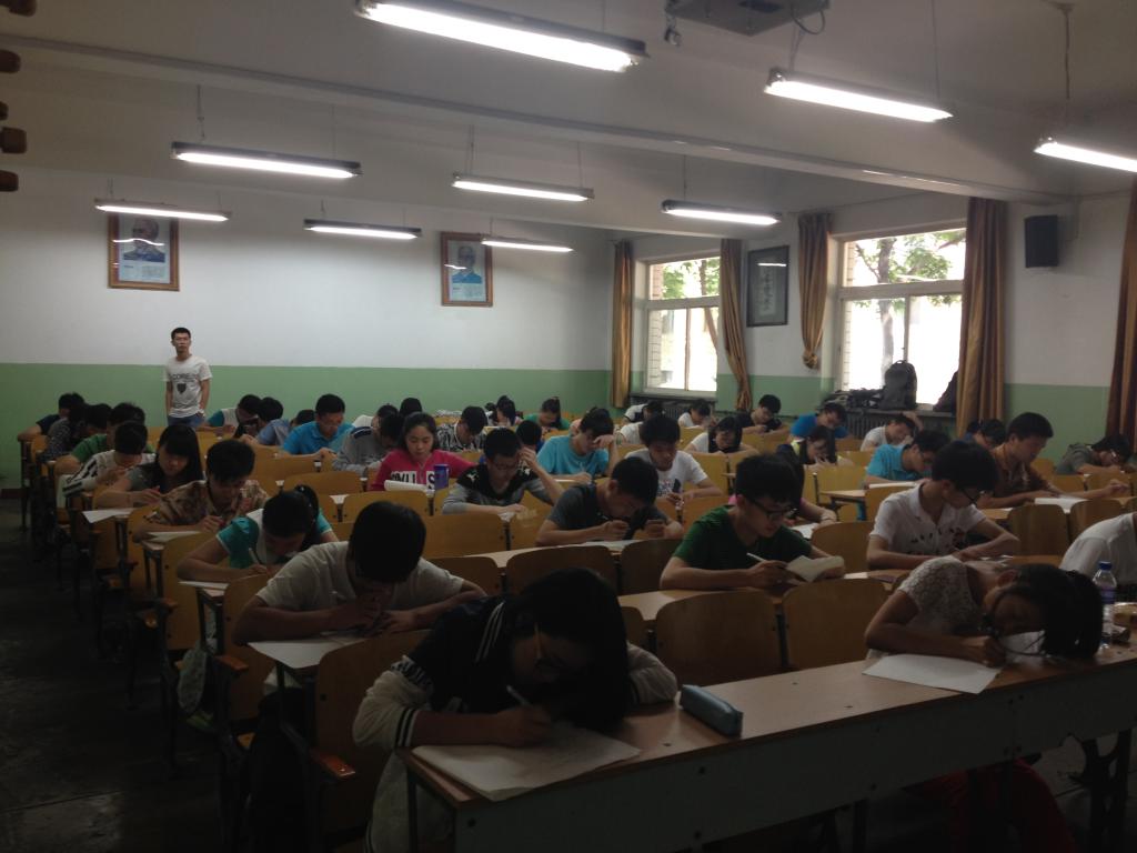 上午8点,考生陆续进入考场,每一张严肃的面容中都含着难以掩饰的自信。8点30分,监考人员宣读了考场纪律之后,考试正式开始。考题分为选择题、填空题与简答题三种形式。考试期间,考生时而停笔沉思,时而奋笔疾书,将自己心中的答案填写在答卷之上。