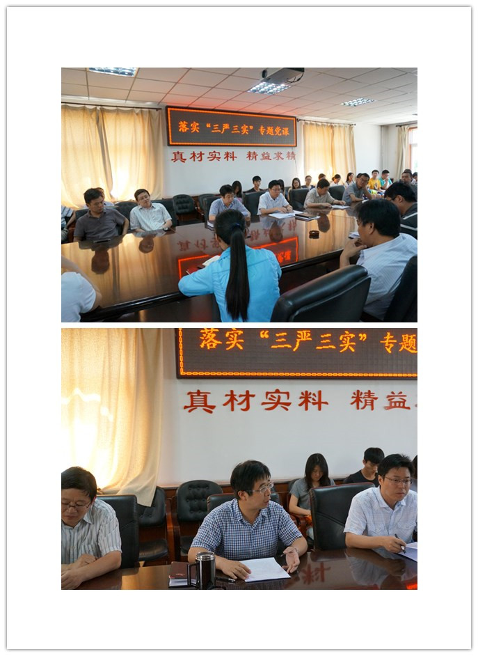 2015年6月12日上午10点,我院党委书记侯华在学院二层会议室做关于“实践三严三实 加强党员思想政治建设和作风建设”的专题党课,党委副书记廖海洪主持,我院教工党员和各学生支部学生党员代表参加学习。