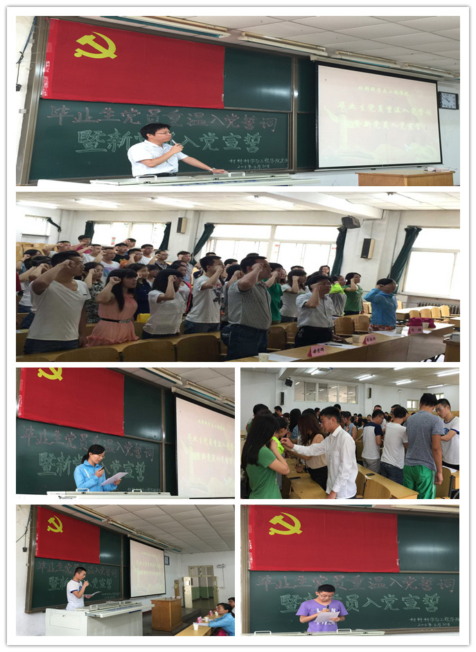 大会在庄严、豪迈的《国际歌》中拉开帷幕。李艳老师宣读了新党员名单;在毋老师的领誓下,全体新党员及毕业生党员在鲜红的党旗下庄严宣誓。然后,毕业生党员代表为新党员佩戴了党徽。接着,新党员张帆和毕业生党员靳东同志分别进行了代表发言,他们明确表达了要为党、为人民奉献青春,要时刻保持党员模范作用,尽自己最大努力在今后的学习和工作中发挥更多的光和热。最后,廖老师对新党员表示了欢迎并提出殷切期望,对毕业生党员送上祝福的同时对所有党员同学寄予了厚望。他希望各位党员要坚定自己的理想信念,不断端正入党动机,明确党员的权利和义务,时刻以共产党员的标准严格要求自己,做到一生一世为党旗增光添彩。