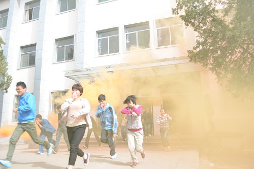 9点30分整,随着烟雾弹的点燃和哨声的响起,演练正式开始。在安全员和班主任的引导下,同学们有序撤离教室,捂着口鼻从烟雾缭绕的楼里冲出。在学生会以及保卫处的工作人员的有效组织下,同学们迅速地向着西区篮球场方向进行疏散。