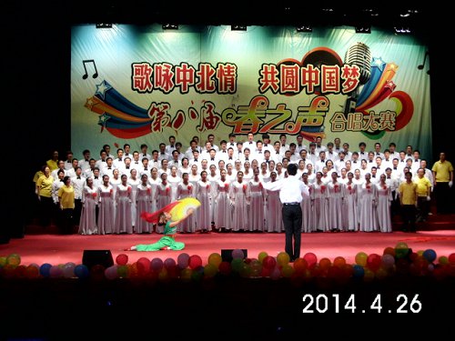 4月26日下午2点,我校在科艺苑举办第八届“春之声”合唱比赛。各个学院都参加,此次比赛共有两个参赛曲目,一个为《再铸辉煌》,另一首为自选曲目。