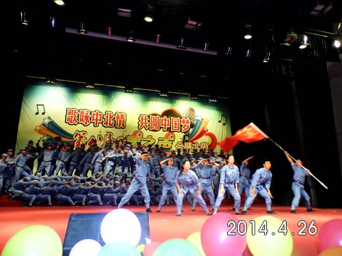 接近3点时,轮到了材料科学与工程学院师生的合唱,我院总党支副书记廖海洪、团委书记崔利莹、学生科科长郭云霞、学生科老师郝小军与同学们合唱,他们的歌声让我们看到了中北大学的历史,看到了师生们团结一心,共同奋斗的身影。《飞翔吧,中国》这首自选歌曲寄托了我们对祖国的希冀,展现了我院师生的靓丽风采和积极向上的精神面貌。经过与其他学院的层层比拼,最终我院师生以96.4分的成绩取得二等奖的优异成绩。