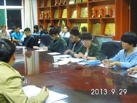 2013年9月29日,材料科学与工程学院在院办二楼召开了团支部会议。这次会议是新生加入团支部后,开的第一次正式会议。参与嘉宾有我院团委书记崔利莹老师,学生团委副书记安东。
