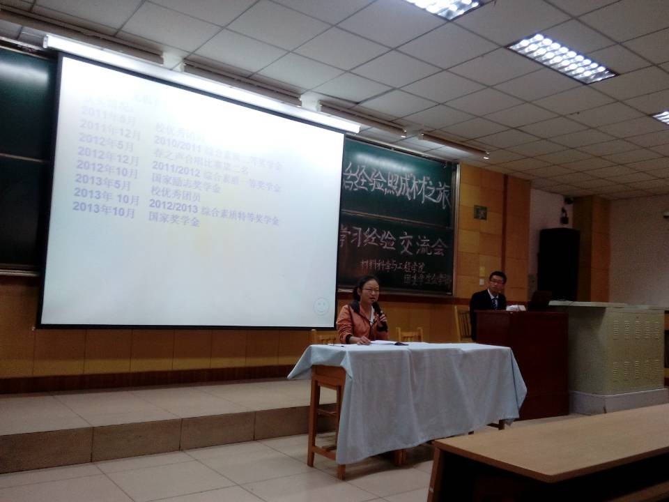 2013年10月20日上午9点,由材料科学与工程学院团委学生会学习部举办的“话经验,照成材之旅”的学习经验交流会顺利举行,李胜利,凌利月,马丽娜,郭惠露,李东兴主讲。校学生会的成员和其他学院的同学担任嘉宾。