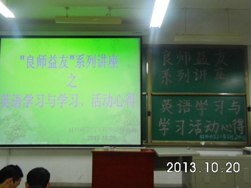 2013年10月20日晚,材料科学与工程学院分科协举办的“良师益友系列讲座——英语学习与学习活动心得”顺利召开。来自10级的优秀学生周亚茹、李婧进行了精彩的演讲。