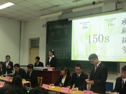 第二场比赛在11411H举行。正方为13030242班,他们的观点是“孩子需要富养”,反方为13030241班,他们的观点是“孩子需要穷养”。辩手们精辟的措辞、犀利的言辞展示出他们咄咄逼人的气势。正方辩手用充满理性色彩的话语论证了己方的观点。反方用出色的口才击以驳之。双方你来我往,唇枪舌剑。在总结陈词中,正、反方通过清晰的思路、精彩的陈词对本次辩论做了完美的总结,给观众留下了深刻的印象。最终,正方赢得本次辩论赛的胜利。