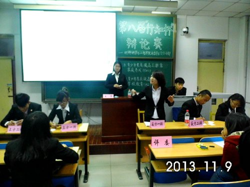 2013年11月9日晚,由材料科学与工程学院学习部举办的第八届“行知杯”辩论赛在11106H进行了两场激烈的辩论,本场辩论赛邀请到第六届“行知杯”以及“春华杯”辩论赛的优秀辩手作为评委。比赛采取世博赛制,严格执行比赛的每一个环节,严格遵循比赛的每一个规则。