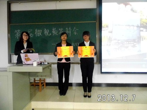 2013年12月7日下午,由我院团委办公室举办的第二届微视频答辩会在15302H进行。担任本次微视频答辩会的评委是校实践部部长颜柏亚,材料科学与工程学院实践部部长陈海婷,宣传部部长田婷,组织部部长王聂彤,分科协主席郭艳明,办公室部长陈若凡,记者站站长于世云。