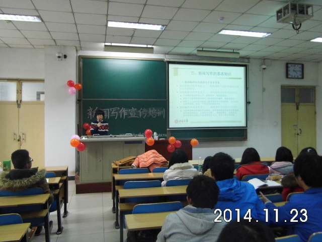 11月23,24日,我院团委记者站组织了为期两天四学时的新闻写作宣传培训。本次培训荣幸邀请到学生科王敏老师和11届宋鸿飞来为同学们讲解新闻稿的撰写和图片的处理方法。