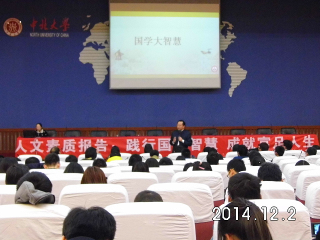 整场报告中,潘教授与同学们分享了国学智慧的神奇魅力,他立足天人合一的思想,通过修身内求,激发潜能智慧,从心灵层面帮助同学们建立更加正面积极的信念系统。潘教授时而温文尔雅、语重心长,时而口若悬河、侃侃而谈。现场的同学们,不知不觉地被吸引、被感染、情不自禁地与台上相呼应、相交流、相启发。台上台下,形成一体,良性互动。报告尾声,潘教授对作为国家未来接班人的大学生提出了两点希望:一是当代大学生不仅需要具有学习能力,更需要想像力与创造力;二是要有坚强的意志力,要树立远大理想,这样才有可能成为“人物”或“人才”。