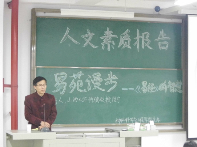 2015年4月9日下午,材料科学与工程学院成功举办了一场题为“易苑漫步”的人文素质报告,本次报告主讲嘉宾为北京国防大学倪宁教授。