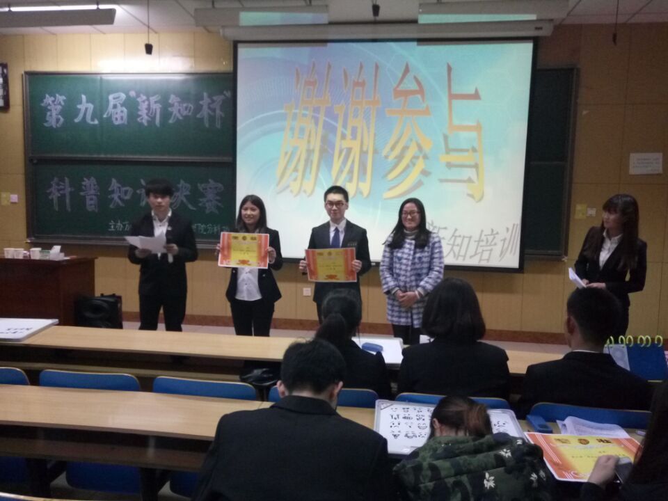 2015年11月7日下午,材料科学与工程学院举办的以“积累科学知识、争当科普少年”为主题的第九届“新知杯”科普知识决赛于11408H圆满落幕。