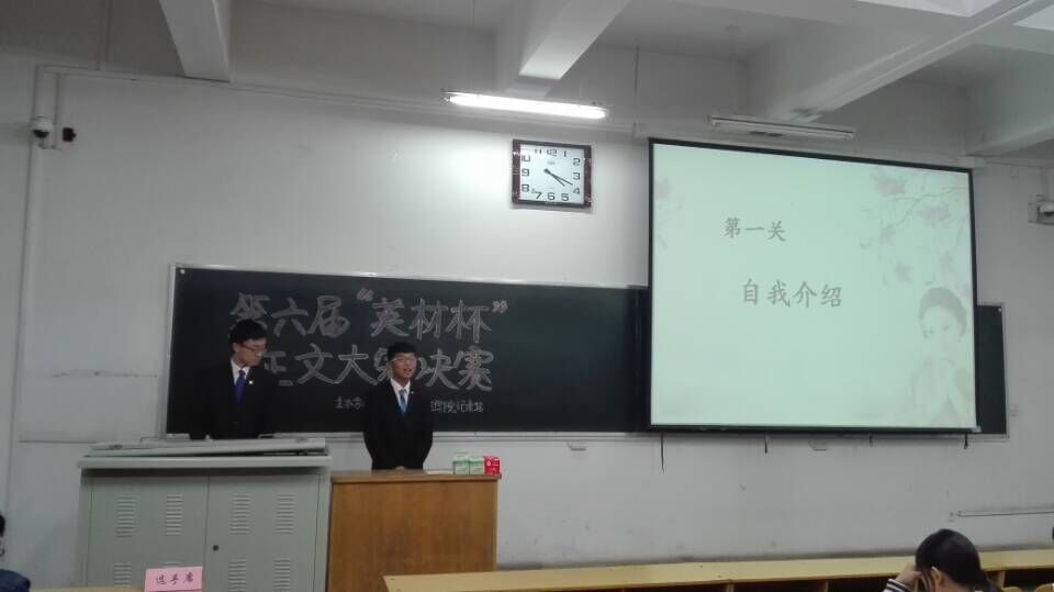 11月13日下午,由材料科学与工程学院团委记者站举办的第六届英才杯征文大赛决赛于10202H圆满结束。本次征文以“___隔山海,山海___(不/俱)可平”及关于中国女药学家屠呦呦获得诺贝尔医学奖与黄晓明跟Angela baby的世纪婚礼所反应出的价值观的讨论为题。体育学院记者站站长关世豪、材料学院文体副主席杨嘉玮、分科协竞赛部部长范佩琦、公寓科纪检部部长洪娇玲,宣传部部长李晋豪,记者站站长张书瑜担任评委。