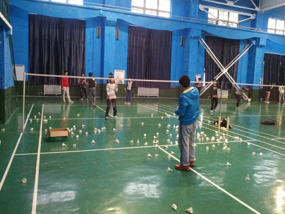 强者可以征服世界上任何一座高峰,因为他不会畏惧那风雨般的磨难。是的,羽毛球院队每天中午一小时的训练是极其辛苦的,包括持拍动作、打球动作的练习以及在场地上左右跑以练习接球,并用力道击球将球打到使对方接不到球的地方。当训练一段时间后,那绿色的场地上“无数”的羽毛球便覆盖了场地;远望,就像大草原上的一片白花群,令人印象深刻。