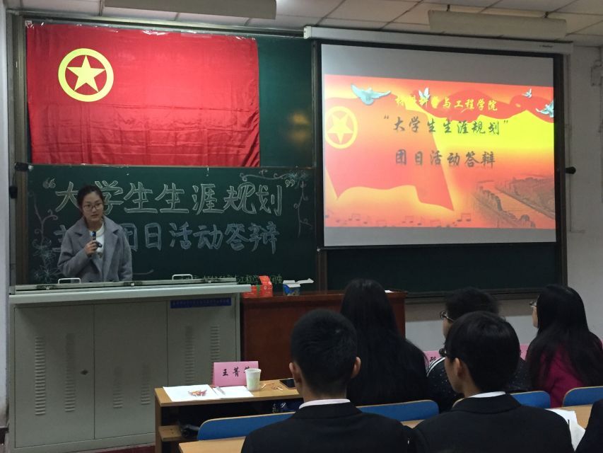 11月22日上午八时,由材料科学与工程学院团委主办的团日活动答辩正式开始,大一各团支部于11105H教室进行了以“大学生生涯规划”为主题的团日活动答辩,大二各团支部于11106H教室进行了以“四进四信”为主题的团日活动答辩。本次答辩有幸请到机械与动力工程学院组织部部长钱星光,环境与化工学院组织部部长赵宏宇,信息与通信工程学院组织部部长孙云昊,计算机与控制工程学院组织部部长狄林丽,理学院组织部部长李则通,经济与管理学院组织部部长樊梦思,体育学院组织部部长王帅,艺术学院组织部部长张红鑫,软件学院组织部部长邢凯,材料科学与工程学院团委副书记李培真、学生会主席王菁菁、组织部部长李晓文担任评委。