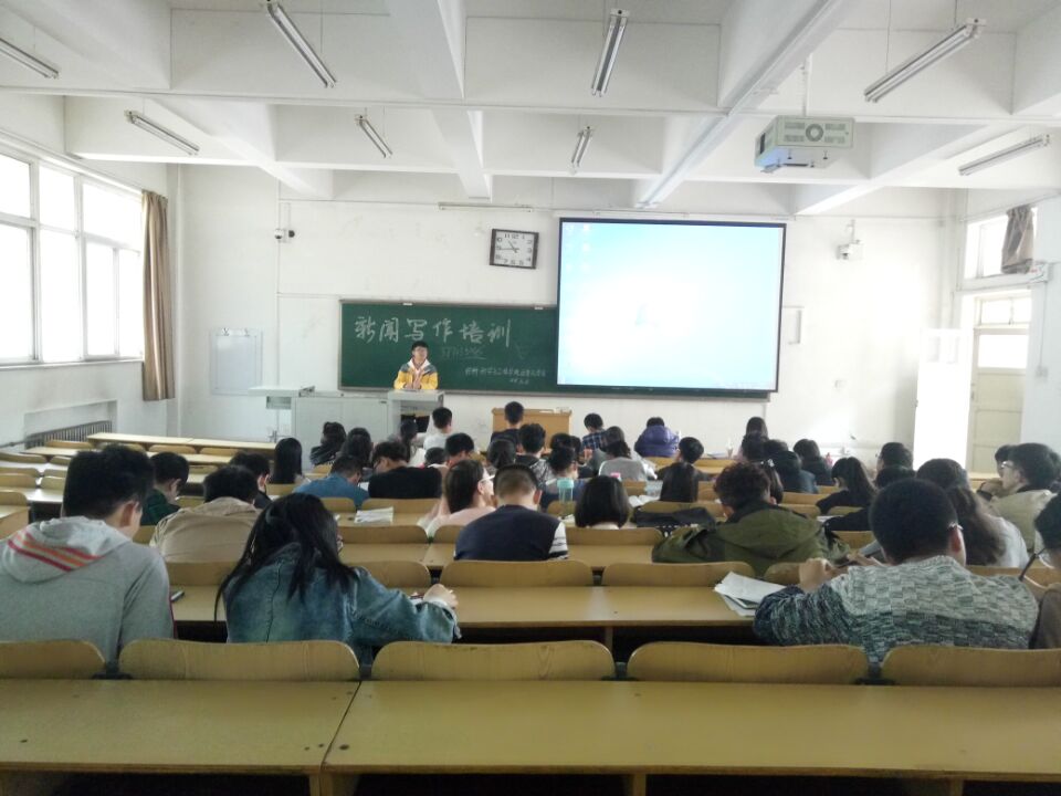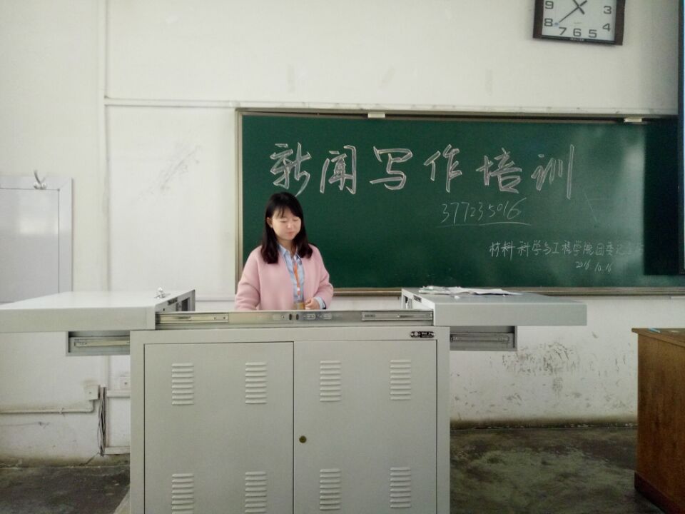2016年10月16日上午十点,由材料科学与工程院团委记者站主办的新闻写作培训在10103H教室顺利展开。本次培训主要针对我院记者站全体成员和大一大二各班级的宣传委员、组织委员,特邀请大学生新闻社学生记者刘晓倩对新闻简讯的创作进行现场的教学指导。