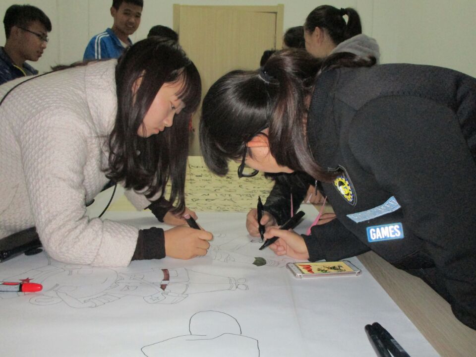 为了纪念红军长征胜利八十周年,为了让同学们更好地了解到红军长征过程中的艰难与不易,11月9日晚上8:00,班长和团支书带领全班同学在文韬2号公寓学生科会议室开展了10米红色长征图的绘画活动。此外,还邀请了校耕砚书画社的社员们一起参活动。
