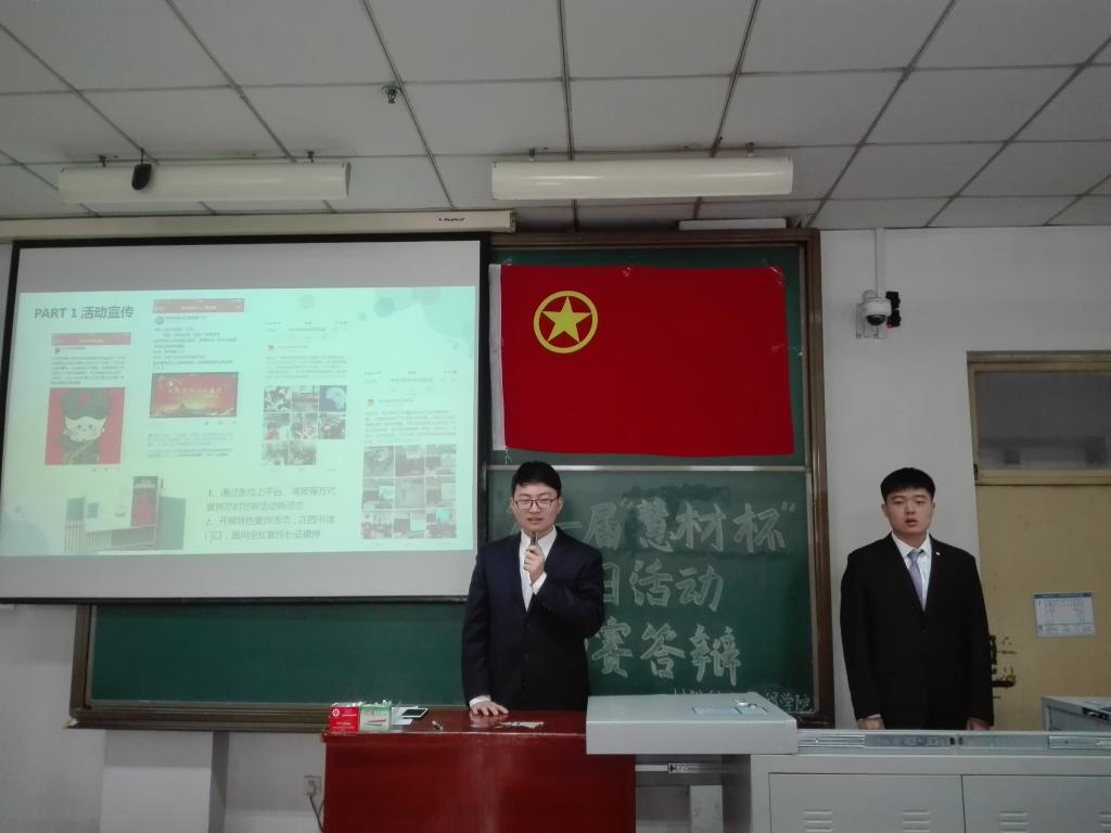 2016年11月13日,11106H教室举办了”慧材杯”团日活动答辩,15030Z01团支部以宣传委员孙超,组织委员赵晓波为代表参加此次答辩,同时还有五位团支部成员作为亲友团出席本次答辩现场。