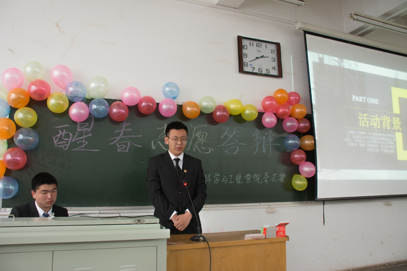 4月9日下午2:30,由材料科学与工程学院青志部主办的“醒春志愿答辩”活动在10101H教室举行。出席此次活动的嘉宾有校青协贾艺琳,团工委副书记周佳韬,我院的团委副书记张莹莹,以及各院的青志部部长和我院的团委学生会各部门的部长。