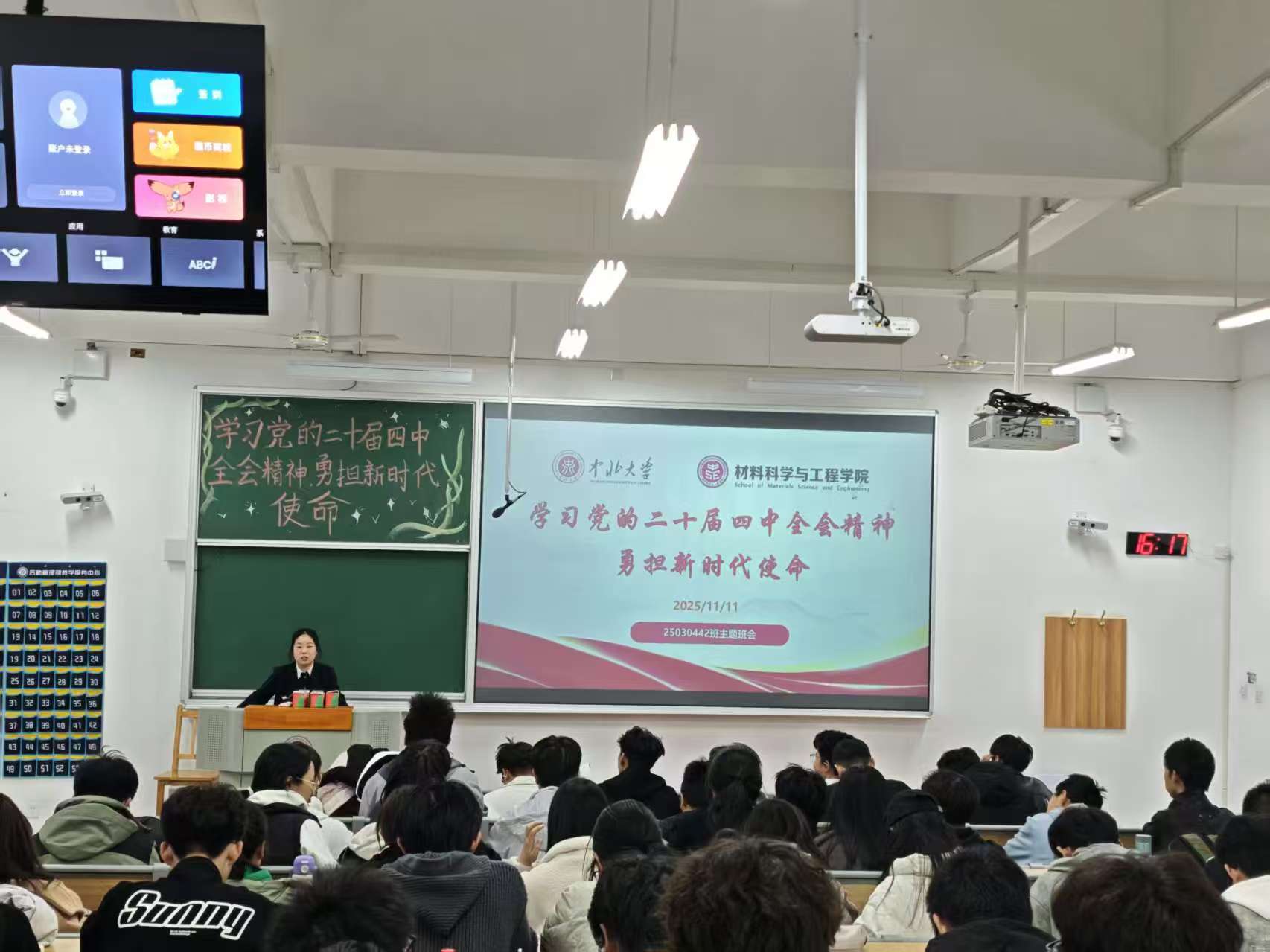 为深入学习领会党的二十届四中全会精神,强化青年学生理想信念教育,11月11日下午16:00,材料科学与工程学院25030442班在17201H教室召开“学习党的二十届四中全会精神,勇担新时代使命”主题班会。班会由班主任李静老师主持,25030442班全体同学参与此次学习交流。