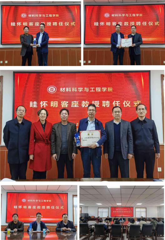 10月19日下午,材料学院举行眭怀明客座教授聘任仪式。院党委书记廖海洪、院长王强、院党委副书记郭云霞、副院长李迎春、刘斌、教师代表和研究生代表参加了聘任仪式。