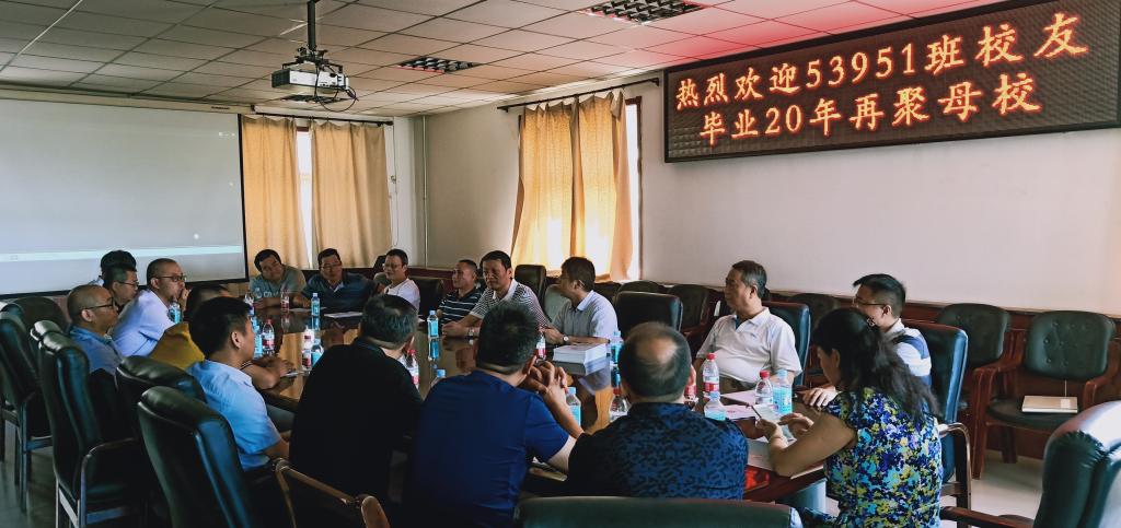 2019年7月6日至7日,53951班校友毕业20年后再次相聚母校。现化学工程与技术学院党委书记廖海洪(53951班班主任)、材料学院院长侯华、院党委书记薛亚奎、院党委副书记郭云霞、本专业老教授靳玉春与校友们共聚学院会议室,共叙师生情,进行了其乐融融的座谈会。