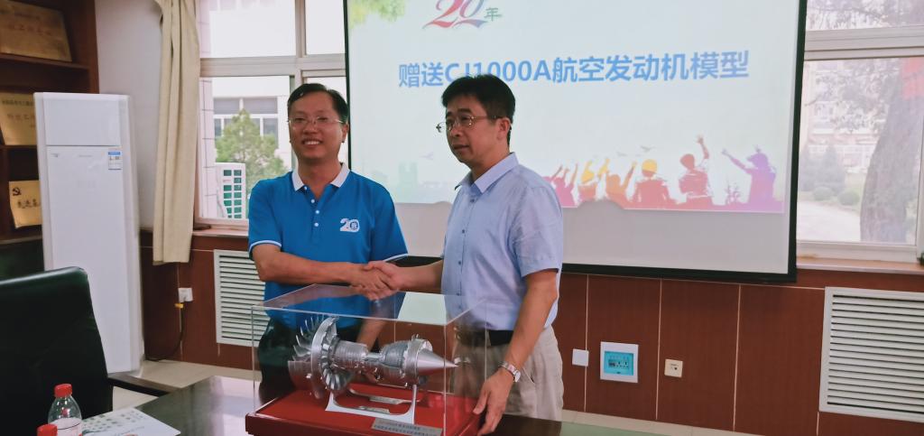 最后,52951班校友们向学院赠送了3D打印航空发动机模型,祝愿母校和材料学院:赢得桃李满天下,乘风破浪奔辉煌!