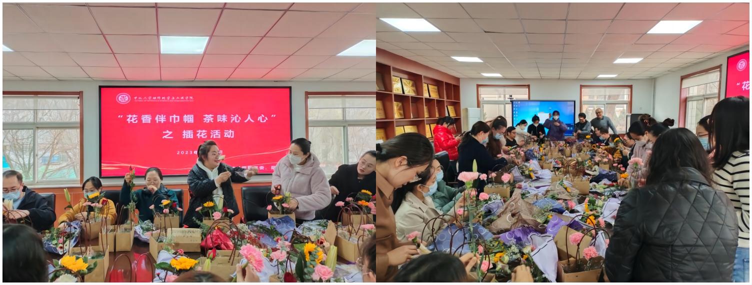 为了丰富教职工的精神文化生活,2023年3月16日,材料学院党委、院工会组织开展了“花香伴巾帼 茶味沁人心”花艺和茶艺主题活动,全院教职工参加了活动。
