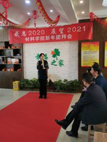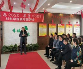 时光飞逝,又到辞旧迎新时。2020年12月31日下午,材料学院2021年新年团拜会在笃学楼二层工会“幸福之家”举行,全院教职工及退休教师欢聚一堂。本次活动由主会场幸福之家和第一、第二会议室2个分会场组成,通过腾讯会议视频同时进行,采取线上线下齐欢聚、场内场外同欢笑的独特方式,对辛勤工作一年的老师们致以新年的问候和美好的祝愿。本次团拜会由郝诗韵老师主持。伴随着喜庆的音乐,参会教师分散到三个会场,大家有说有笑,气氛热烈。