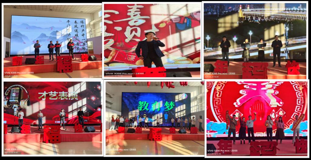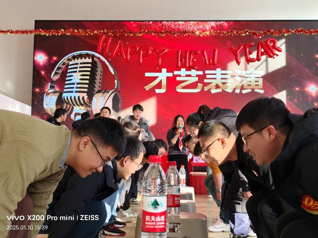 致辞结束后,精彩的节目和有趣的游戏轮番上演。院领导廖海洪书记、王强院长、刘斌和王超副院长带来的诗朗诵《展望新年》,用激昂的文字和深情的表达,展望了学院对2025的美好愿望。工会万松林老师的独唱《恭喜发财》,歌声悠扬,传递着浓浓的新年祝福,赢得了现场观众的阵阵掌声。金属材料专业诗朗诵的《我们爱科研》现了学院师生对科研的热爱。行政部门共同配音的《甄嬛传之期末的爱与恨》,教师们将期末时的爱与恨诠释得十分到位,真实反映了高校现行情况下期末教与学的状态。高分子专业带来的歌舞《敬业阵线联盟》活力四射,引得台下观众掌声连连。材料成型专业诗朗诵的《我地南方和北方》展现了学院教师们对祖国山河的赞美。无机专业的歌曲串烧更是涵盖了多种风格,让大家沉浸在美妙的音乐之中。