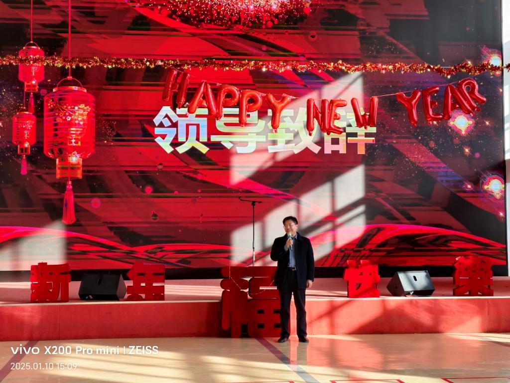 随着主持人激动人心的倒计时,联欢会正式开启。学院书记廖海洪首先发表元旦致辞,对过去一年学院教师的辛勤付出表示衷心感谢,对取得的成绩给予充分肯定,并对新的一年寄予了殷切期望,鼓励大家在2025 年继续砥砺前行,再创佳绩。