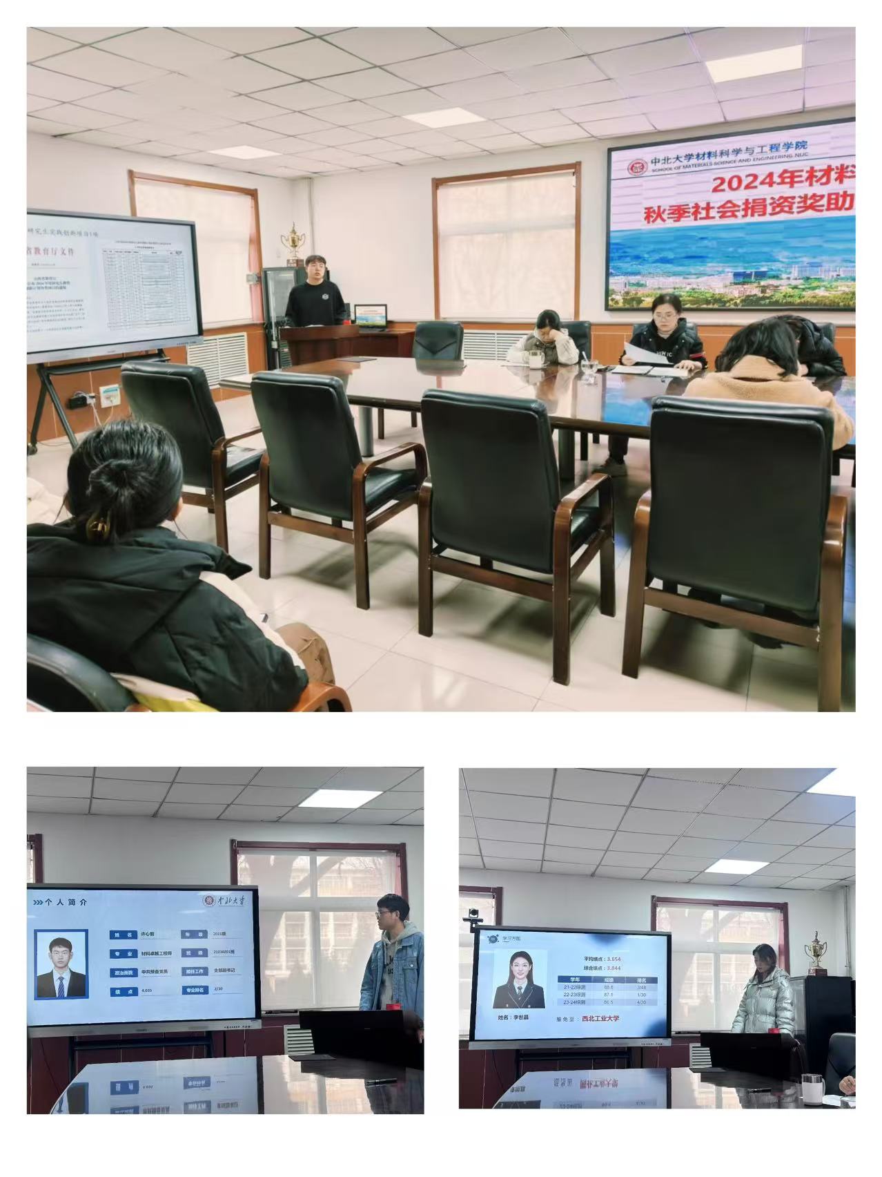 为深入推进奖助学金评审工作的育人实效,引导激励广大学子传承“太行精神”,秉承“致知于行”校训,勤奋学习、积极进取,努力成长为担当民族复兴的时代新人,激励大家以良好的学业回报社会,培养学生诚实守信、务实求新、百折不挠的优良道德品质,在校内形成刻苦学习、积极参加社会实践、力求全面发展的良好风气,促进学生德智体美全面发展。12月11日,材料科学与工程学院在院办大会议室举办了2024年秋季社会捐资奖助学金评审会,院党委书记廖海洪与全体辅导员一同出席会议并担任评委。