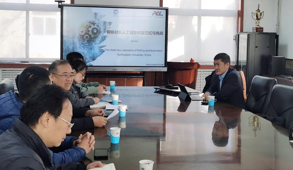 2024年11月28日上午,应材料科学与工程学院及教育部共建铝/镁材料开发应用协同创新中心邀请,东北大学徐伟教授在学院会议室做了题为:“钢铁材料人工智能研发范式与挑战”的学术报告,报告由王强院长和赵宇宏教授共同主持。