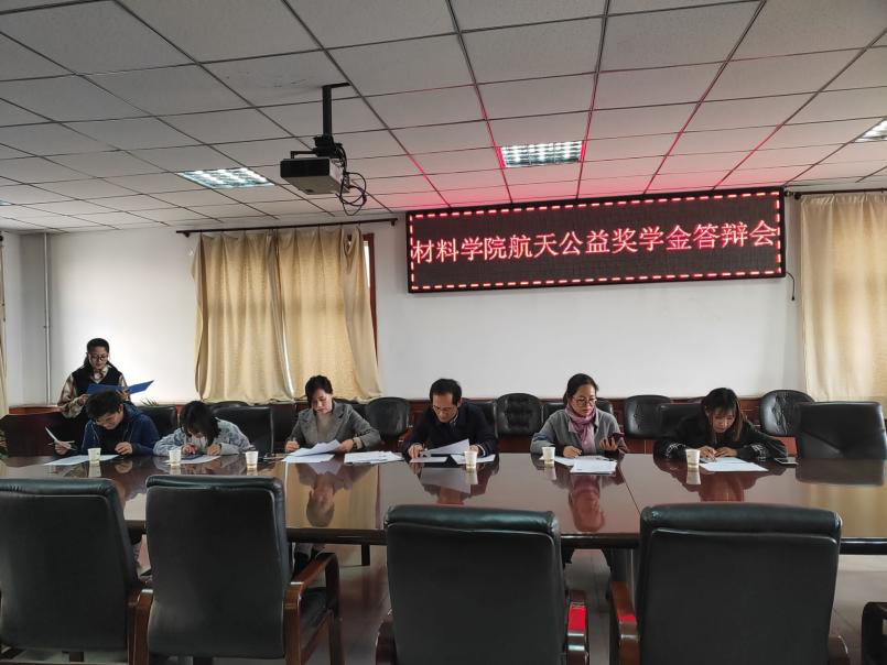 2019年10月18日,材料科学与工程学院于院办二层会议室举办了2019年材料学院航天公益奖学金答辩会,出席本次航天公益奖学金答辩会的评委老师有副院长刘斌老师、综合科肖莉老师、学生科科长殷炳叶老师、学生科贾越老师、学生科宋春丽老师、学生科李彤辉老师。本次航天公益奖学金共有三个名额,其中有一个本科生名额,两个研究生名额,研究生名额又分为一个一等和一个二等,参加答辩的有本科生田琦、刘真铭共两位同学,本科生航天公益奖学金得主将从两位同学中选出,研究生有罗婷婷、赵雪婷、许萍、刘月鑫共四位同学,研究生航天公益奖学金得主将从四位同学中选出,材料科学与工程学院勤工助学管理委员会组织了本次答辩。