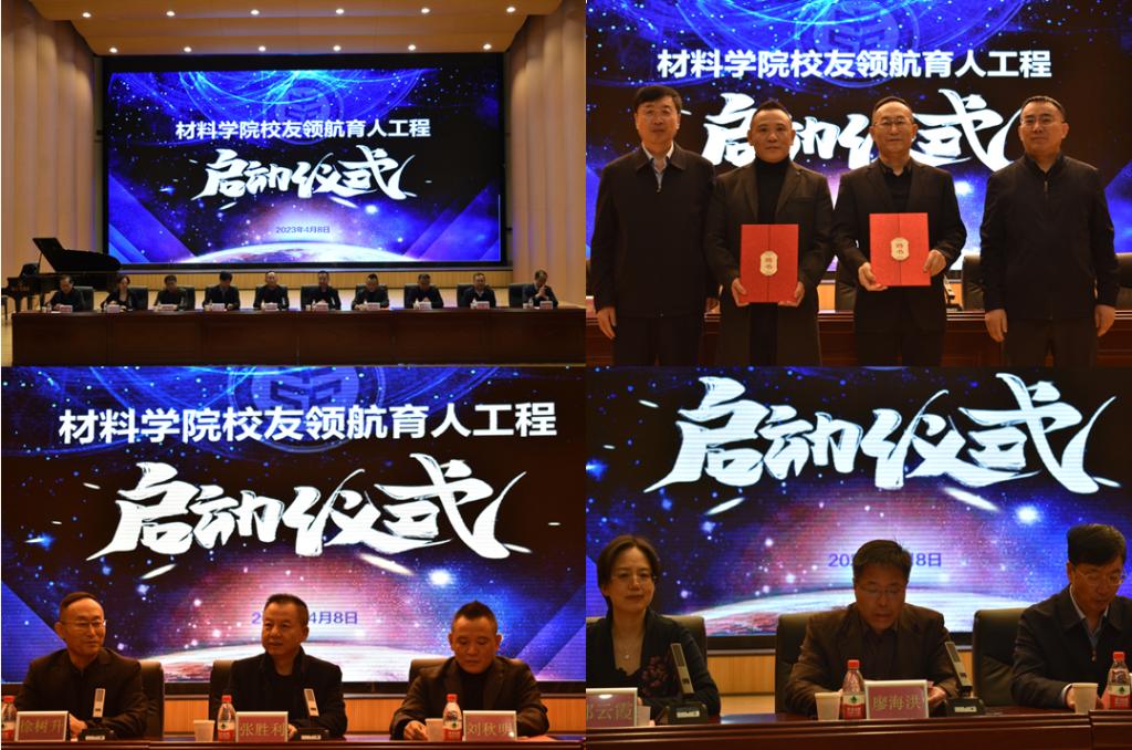 为充分发挥优秀校友榜样激励作用,给在校学生提供与优秀校友“零距离”学习交流的机会,2023年4月8日上午,材料科学与工程学院“校友领航”育人工程启动仪式于科艺苑成功举办。我校83级校友、现任深圳德天元实业有限公司董事长徐树升,95级校友、现任深圳春图科技有限公司董事长刘秋明,中北大学校长办公室主任张胜利、招生与就业工作部部长李博、学生工作部部长李俊华,材料科学与工程学院领导班子全体成员出席仪式。