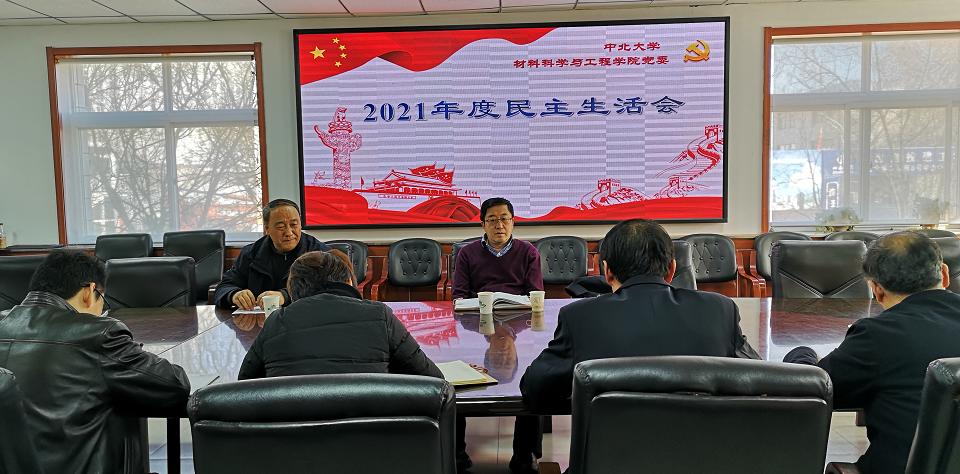 根据中北大学《关于开好2021年度党史学习教育专题民主生活会的通知》,2022年1月15日下午,材料科学与工程学院党委组织召开2021年度领导班子党史学习教育专题民主生活会,副校长刘俊莅临指导、校纪委委员李仰军进行督导,会议由院党委书记薛亚奎主持,学院领导班子成员参加会议。