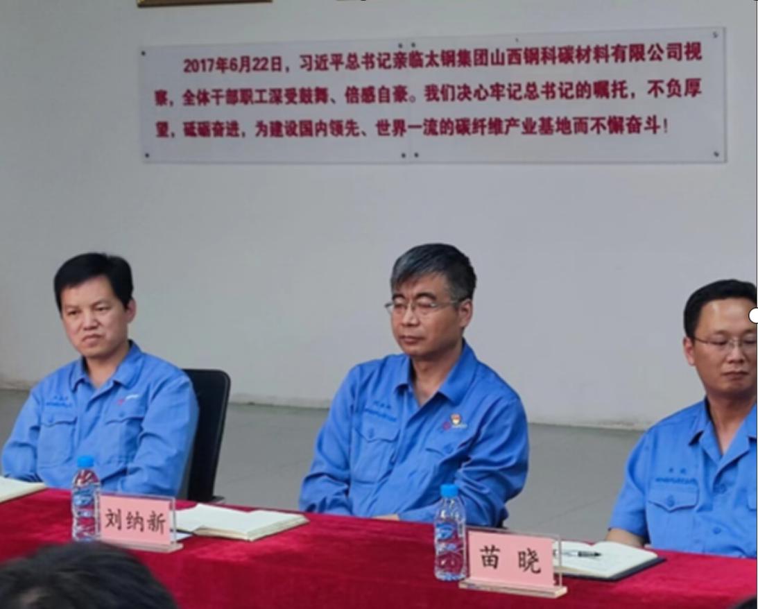 公司副总经理刘纳新对中北大学师生一行的到来表示欢迎,刘纳新为大家详细介绍了山西钢科高端碳纤维研发、生产、应用情况,重温了习近平总书记在此做出的重要指示。