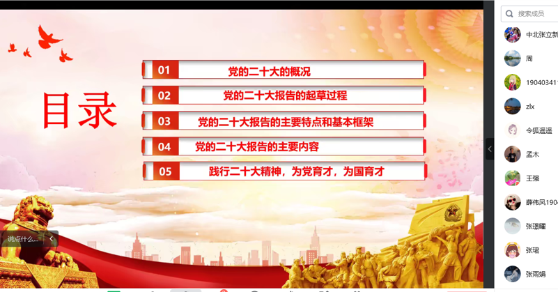 为全面学习好、宣传好和贯彻好党的二十大精神,充分推动党的二十大精神深入人心,2022年12月22日下午,党的二十大精神校内宣讲团成员、材料学院党委书记廖海洪进行了以“学深弄懂践行党的二十大精神 培养社会主义建设者和接班人”为主题的线上宣讲,学院全体教职工和学生党员代表参加了学习。