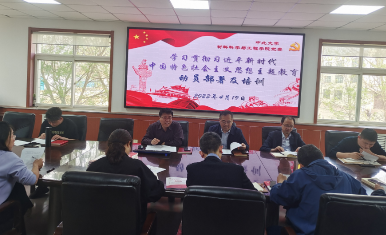 为全面贯彻落实习近平总书记在学习贯彻习近平新时代中国特色社会主义思想主题教育工作会议上的重要讲话精神,用党的创新理论统一思想、统一意志、统一行动,推动学院主题教育扎实有效开展,4月19日下午,材料科学与工程学院党委在学院会议室开展了学习贯彻习近平新时代中国特色社会主义思想主题教育动员部署和培训,会议由廖海洪同志主持,学院全体处级领导干部、党委委员和党支部书记参加会议。