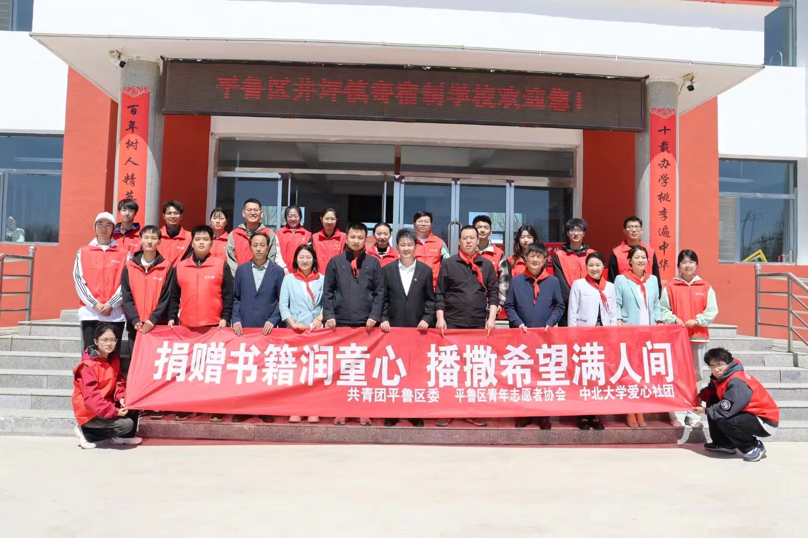 2024年4月23日,在第29个“世界读书日”来临之际,中北大学材料科学与工程学院团委、中北大学爱心社联合山西省朔州市平鲁区团委、区教育局、区青年志愿者协会一同举办“捐赠书籍润童心,播撒希望满人间”公益志愿活动。校学工部教育办主任毋登辉、校团委社团工作部部长孙哲元、材料科学与工程学院团委书记郝诗韵携爱心社数十名成员共赴平鲁区井坪镇寄宿制学校参加捐赠仪式。