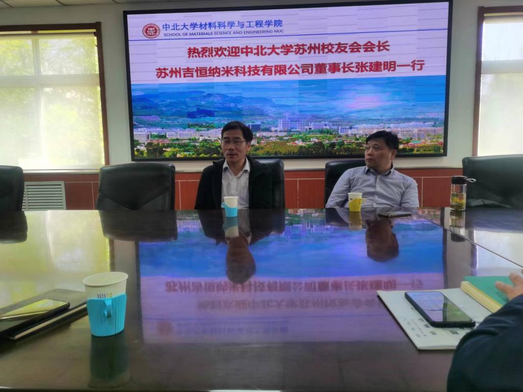 2024年4月23日,苏州吉恒纳米科技有限公司董事长张建明一行来校洽谈。在学院会议室,学院党委书记廖海洪、院长王强分别向客人全面介绍了学院的学科、专业、科研及学生就业等情况,并重点介绍了学院近年来在纳米材料领域取得的成绩。苏州吉恒纳米科技有限公司董事长张建明介绍了单位的基本情况,重点讲解了当前电子材料的技术需求。针对这些技术需求,学院领导向客人介绍了当前各技术领域的发展方向,并展示了中北大学在一些领域的特色优势。座谈会上廖海洪书记最后指出:中北大学材料科学与工程学院在兵工领域多年深耕细作,技术成果虽然在国防军工系统中获得广泛应用,但在电子行业的应用还有欠缺;学院将以具体项目合作为依托,加强人才交流与技术协同。